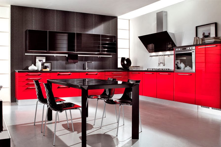 Hoy les traigo algunas ideas y fotos de Diseño de Cocinas en colores Rojo y Negro. Diseños de cocina integrada en el color rojo y negro. Diseños de cocina con comedor integrado en conjunto crean un ambiente muy elegante y muy elegante.